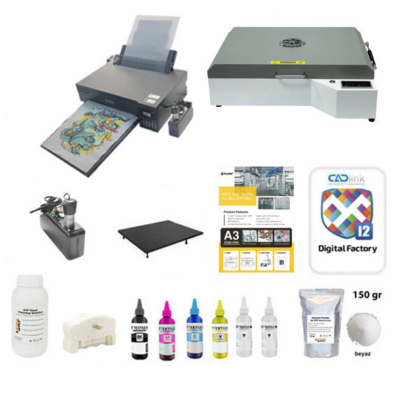 Beyaz Mürekkepli Epson L18050 A3 DTF Tekstil Baskı Seti