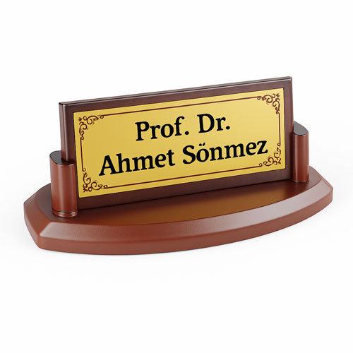 Üzerinde yer alan ad-soyad ve unvan bilgisi, şık bir metal levhaya işlenerek ürünün ön yüzüne sabitlenir.