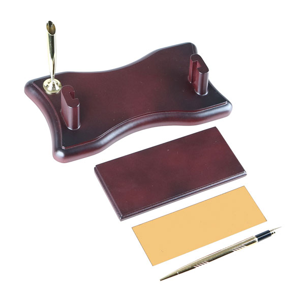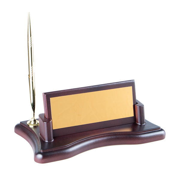 Şıklığı ve zarafeti bir arada sunan bu özel tasarım ahşap masa isimliği, ofis masanıza prestij katacak.