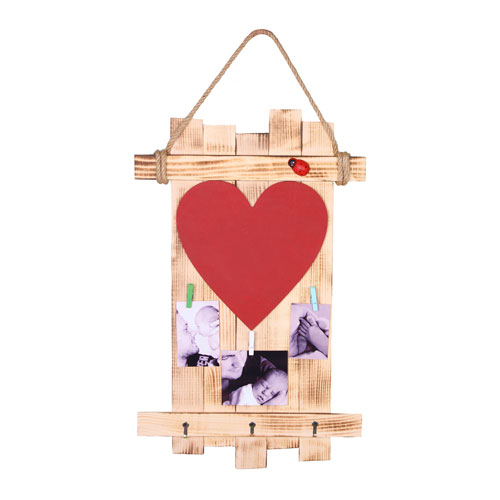 AFC-007 Ahşap Asimetrik Mandallı Çerçeve - Kalp Kırmızı Tahtalı