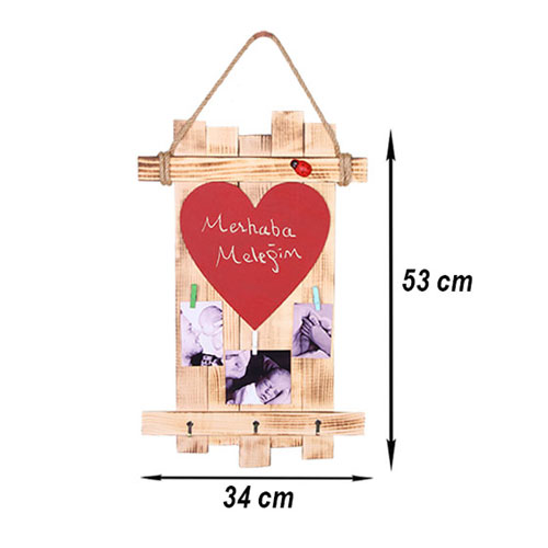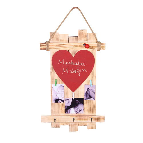 İçerisine farklı ebatlarda fotoğraf yerleştirebileceğiniz duvara asmalı , mandallı eskitme ahşap fotoğraf çerçevesi.