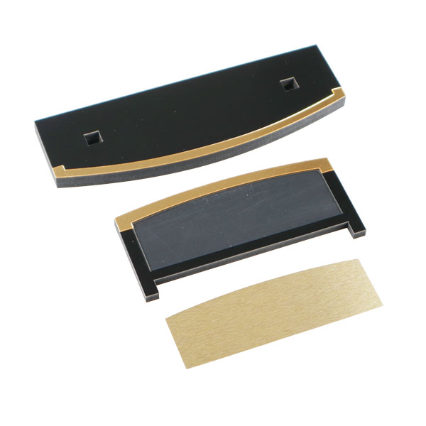 Metale baskı yapıldıktan sonra çift taraflı bant veya başka bir yapıştırıcı ile isimlik üzerine yapıştırılır.