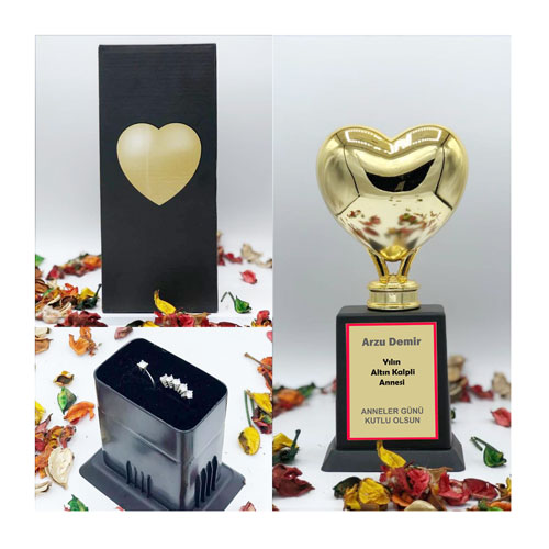Ürünün kalp kısmı 3 boyutlu olup, altın sarısı krom kaplamadır.