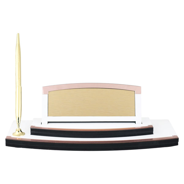 Ürün içeriği: 1 adet ahşap isimlik + 1 adet altın renkli sublimasyon baskı metali + 1 adet altın kalem