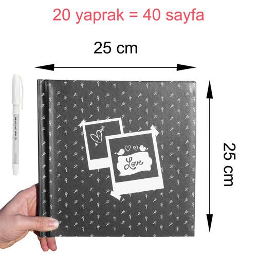 Ürün İçeriği:  1 adet 20 yapraklı ( 40 sayfa ) siyah anı defteri + 1 adet beyaz jel kalem +  75 adet 2.5x3.5 cm sticker