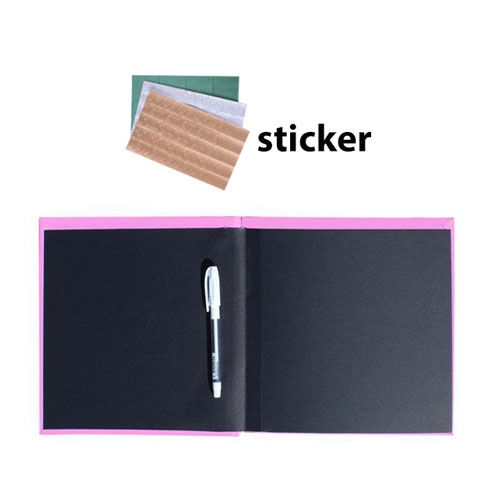 Ürün İçeriği: 1 adet 20 yapraklı ( 40 sayfa ) siyah anı defteri + 1 adet beyaz jel kalem + 75 adet 2.5x3.5 cm sticker