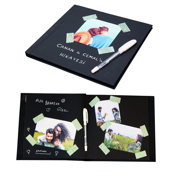 Ürün İçeriği: 1 adet 10 yapraklı (24 sayfa) siyah anı defteri + 1 adet beyaz jel kalem + 36 adet sticker