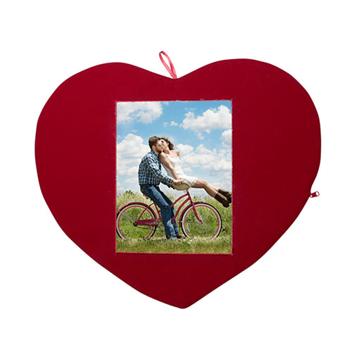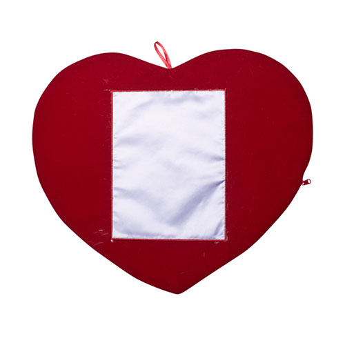 Sublimasyon baskıya uygun, kadife malzemeden üretilmiş kalp şeklinde, kırmızı renkli bir yastık kılıfıdır.