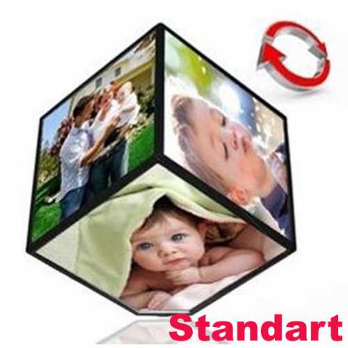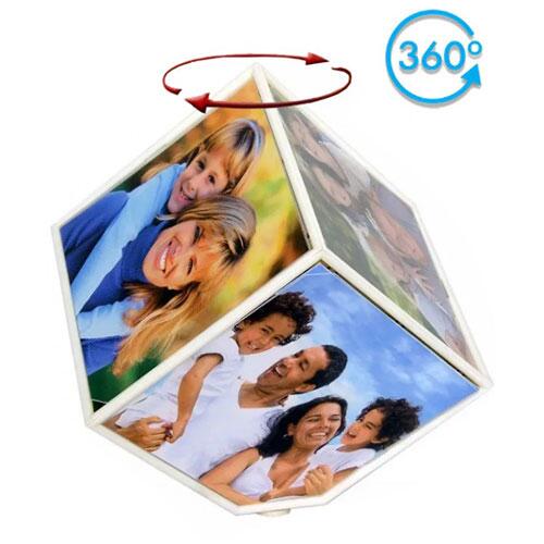 Küp şeklindeki bu ürün içerisine 6 adet fotoğraf konularak ve 1 adet alkalin kalem pil ile çalışır. Küp çerçevenin motor ve dönme mekanizması gizlenmiş olduğu için sihirli dönen küp çerçeve olarak'ta adlandırılır. Çok özel bir tasarımı olan bu ürün ile birçok resim aynı anda sergilenebilir. Standart çerçevelerden sıkılanlar için idealdir. Motor yavaş yavaş ve sessiz olduğu için her ortamda çok güzel bir görünüme sahiptir.