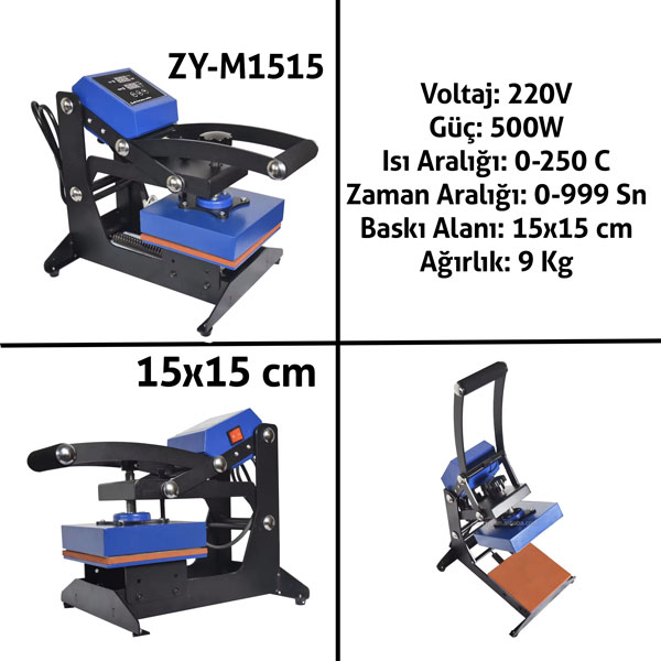 ZY-M1515 DÜZ TRANSFER BASKI PRESİ 15X15 CM