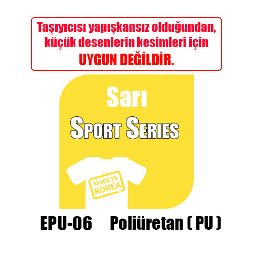 Önemli Not: Taşıyıcı film yapışkansızdır. Taşıyıcının yapışkansız olması nedeniyle spor formalarındaki isim ve numara baskıları gibi büyük desenler kesildiğinde çok kolay ayıklanır. Daha küçük desenler için taşıyıcısı olan diğer PU serisi flexler kullanılmalıdır.