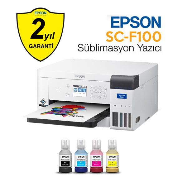 Ürün İçeriği: 1 adet SC-F100 yazıcı + 4 adet 140 ml orijinal Epson Sublimasyon mürekkepleri