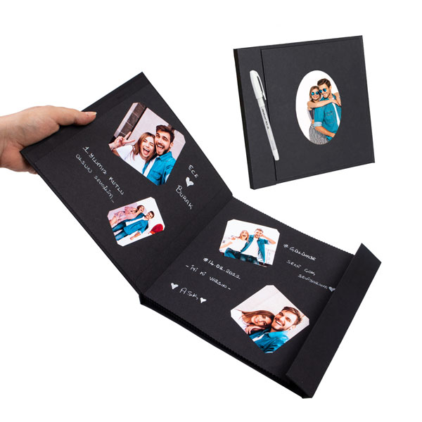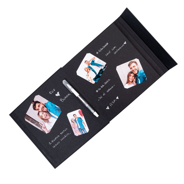Ürün İçeriği: 1 adet 12 yapraklı (24 sayfa) siyah anı defteri + 1 adet beyaz jel kalem