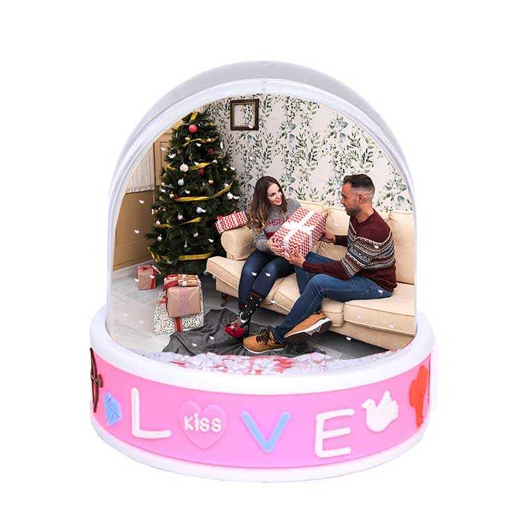 Ön ve arka yüzey olmak üzere iki adet 6 x 7 cm ebadında fotoğraflarınız ile süsleyebileceğiniz, müzik ile beraber ışıklarıda yanabilen, hediye kutulu dekoratif ışıklı ve müzikli kar küresi çerçeve.