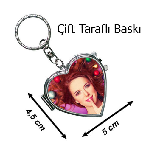 Aynalı Metal Kalp Anahtarlık (Çift Taraflı)