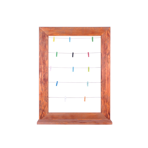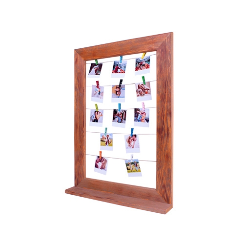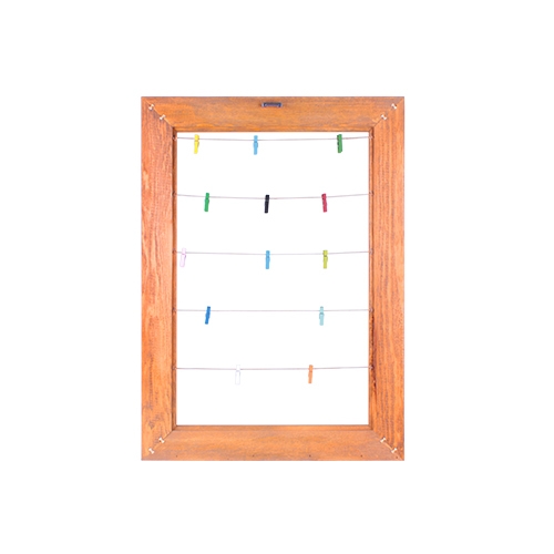 Dikdörtgen şeklinde olan ve ahşap malzemeden üretilen bu dekoratif çerçeveyi, 15 adet fotoğraf ile beraberinde gelen mandallar ile duvara asarak sergileyebilirsiniz.