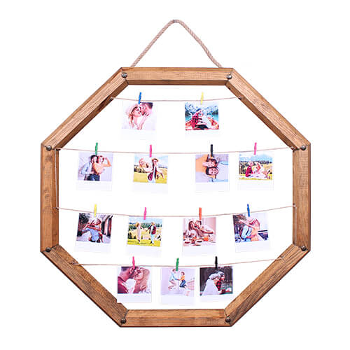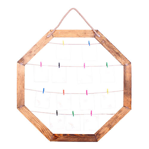 İçerisine farklı ebatlarda fotoğraf yerleştirebileceğiniz duvara asmalı , mandallı eskitme ahşap fotoğraf çerçevesi.