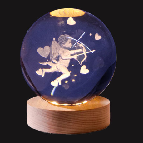 Işıklı Ahşap Standlı Aşk Oku Eros Cam Küre - USB Baglantılı