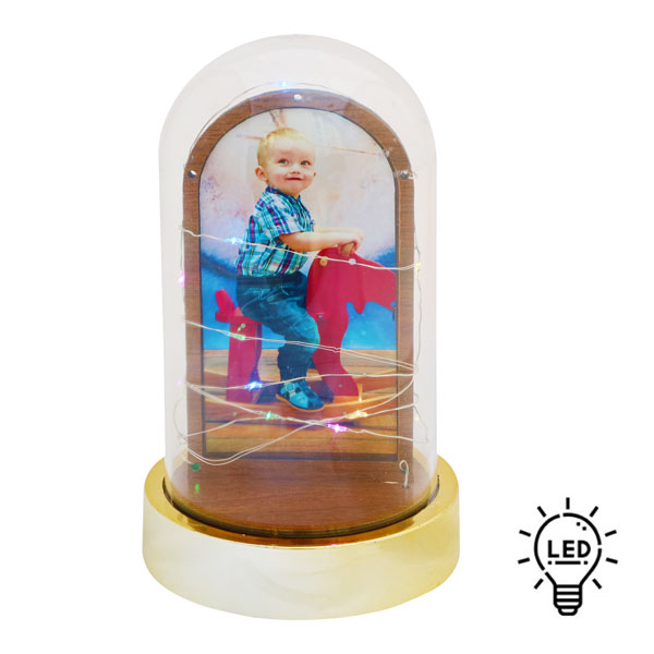 Işıklı Fanus Ahşap Fotoğraf Çerçevesi - Altın Tabanlı