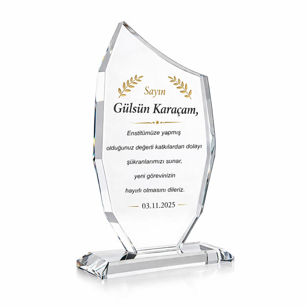 Dayanıklılık: Kristal cam malzeme, çizilmelere ve deformasyona karşı dayanıklıdır, bu da plaketlerin yıllar boyunca ilk günkü gibi kalmasını sağlar.