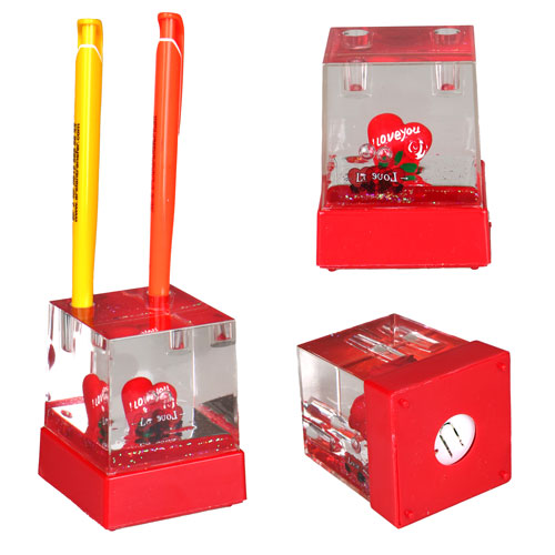 Love temalı, kalemlik yeri olan ışıklı ve müzikli bir kar küresi modelidir.