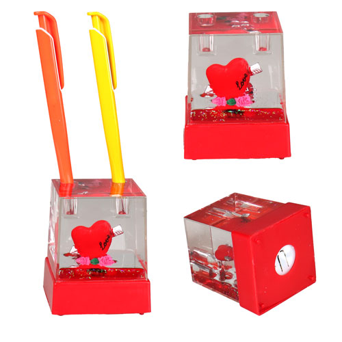 Love temalı, kalemlik yeri olan ışıklı ve müzikli bir kar küresi modelidir.