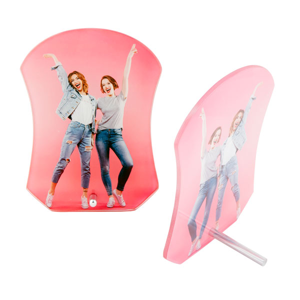 Ürün baskısı üzerinde emisyon bulunan arka yüzeylerinden yapılmaktadır. Baskı sonucu ön yüzden görülmektedir. Baskı sonrasında metal ayak cam üzerine vidalanarak teşhir edilir.