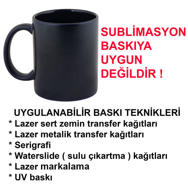 Bu kupa sublimasyon baskıya uygun değildir.Sublimasyon dışında aşağıdaki tekniklerle baskı yapılabilir: