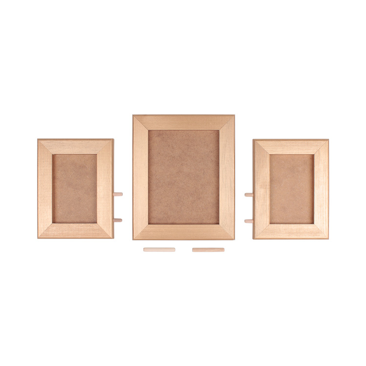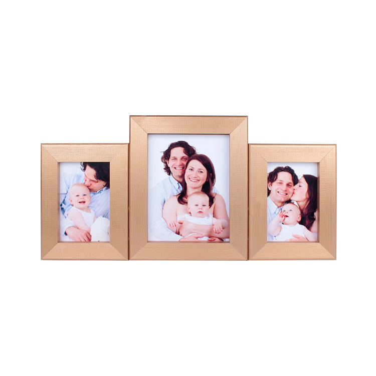 Altın renkte olan, ahşap malzemeden imal edilen, 2 adet 10 x 15 ve 1 adet 15 x 20 ebadında toplam 3 adet fotoğraf ile dikey şekilde konumlandırarak sergileyebilirsiniz.