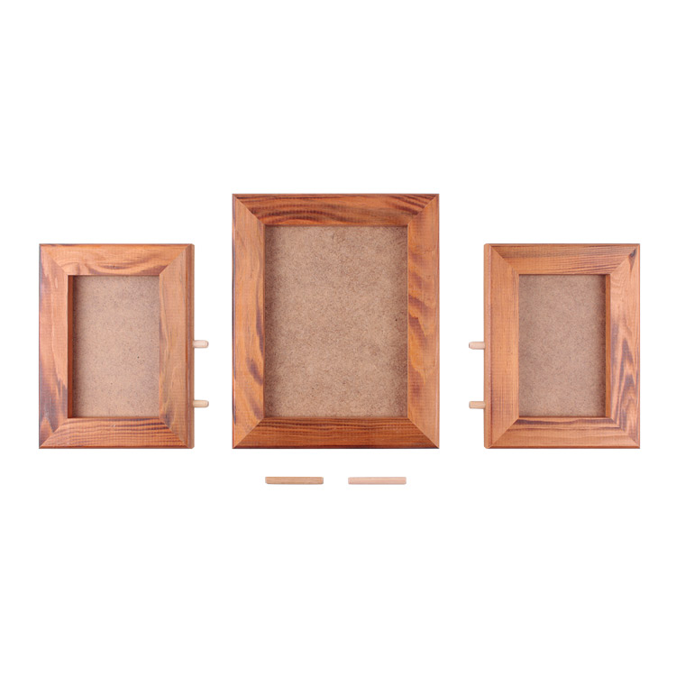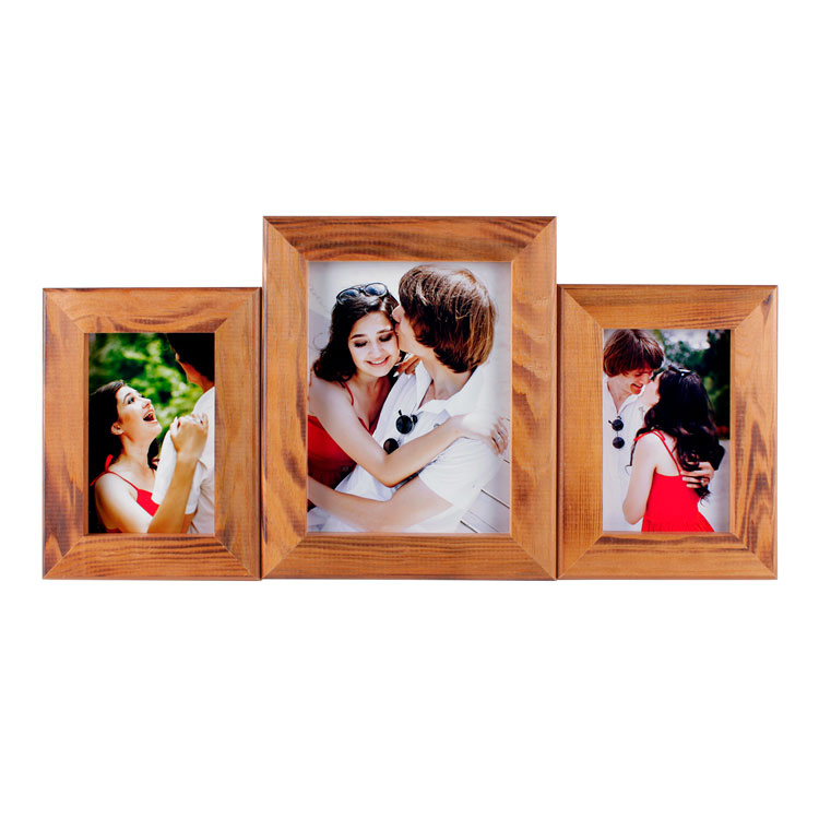 Ceviz renginde, ahşap malzemeden imal edilen, 2 adet 10x15 ve 1 adet 15x20 ebadında toplam 3 adet fotoğraf ile dikey şekilde konumlandırırarak sergileyebilirsiniz.