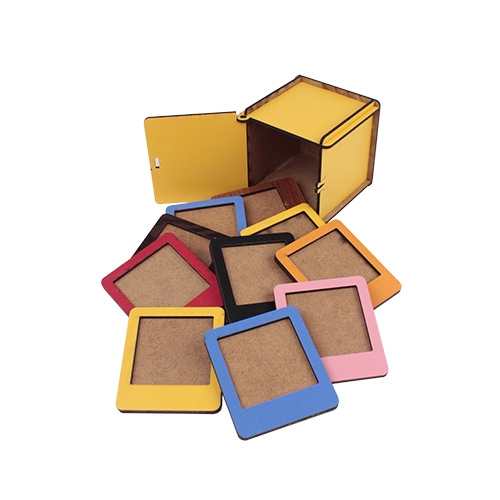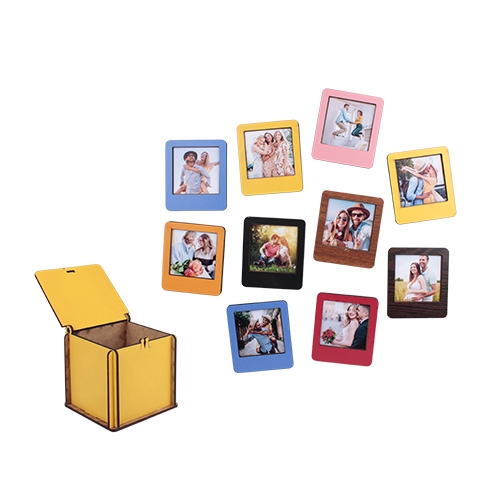 Sarı renkte MDF malzemeden üretilen kutusu ve 12 adet farklı renklere sahip olan Polaroid İnstax Çerçevelerini, 5 x 5 cm ölçülerine sahip 12 adet fotoğraf ile süsleyebilir, çerçevedeki mıknatıs sayesinde metal yüzeye konumlandırabilirsiniz.