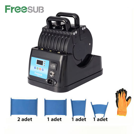 Ürün içeriği: 1 adet kupa baskı presi + 1 adet ısı eldiveni + 5 adet farklı ebatlarda silikon kelepçe