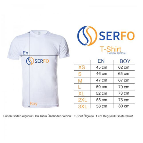 Tişört bedenleri 2 cm (+/-) farklılık gösterebilir.