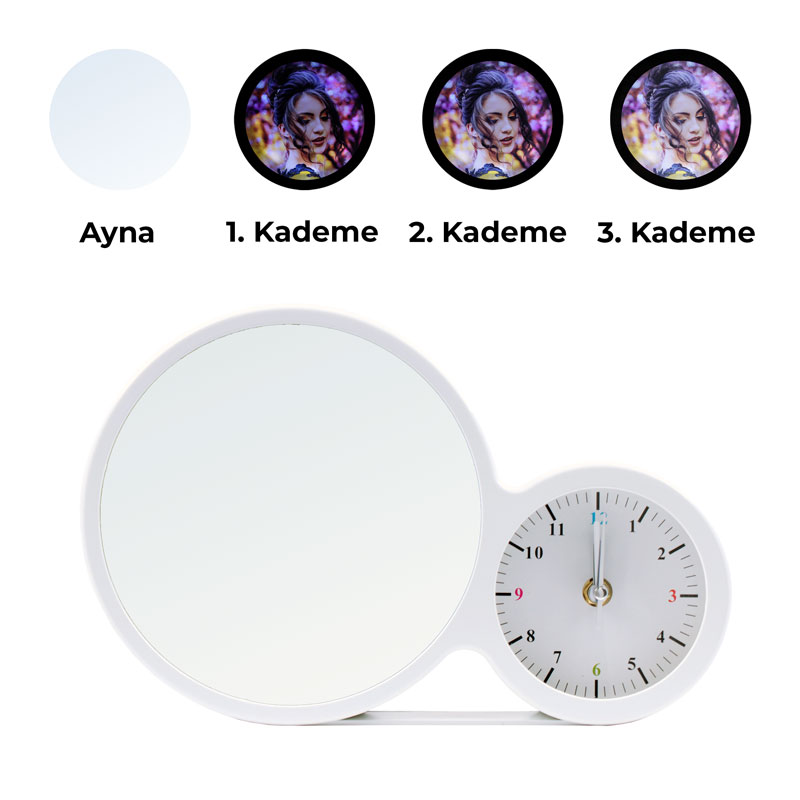 Üç Kademeli Işıklı Sihirli Saatli Led Ayna Fotoğraf Çerçevesi