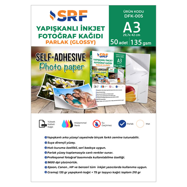 SRF Arkası Yapışkanlı İnkjet PARLAK Fotoğraf Kağıdı