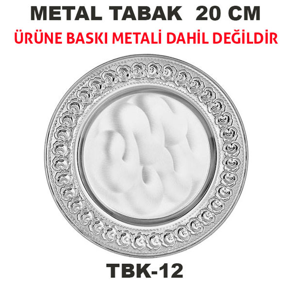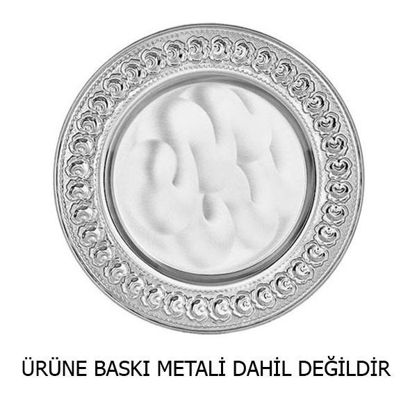 Tabak çapına uygun kesilmiş yuvarlak baskı metalleri ( beyaz, aynalı altın , aynalı gümüş , fırçalı altın , fırçalı gümüş) satın alarak metale baskınızı yapıp tabak göbeğine bu metali yapıştırmanız gerekir.