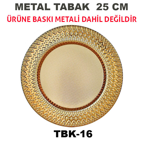 Ürün içeriği: 1 ad. 25 cm altın metal tabak (Ürün baskı metali , teşhir ayağı veya kutu içermez.)