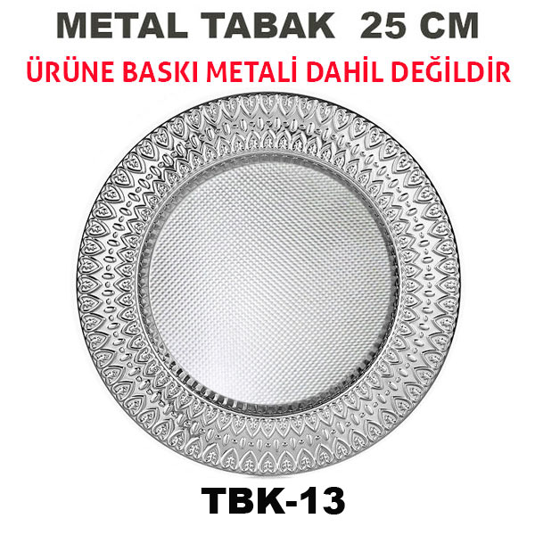Tabak çapına uygun kesilmiş yuvarlak baskı metalleri ( beyaz, aynalı altın , aynalı gümüş , fırçalı altın , fırçalı gümüş) satın alarak metale baskınızı yapıp tabak göbeğine bu metali yapıştırmanız gerekir.