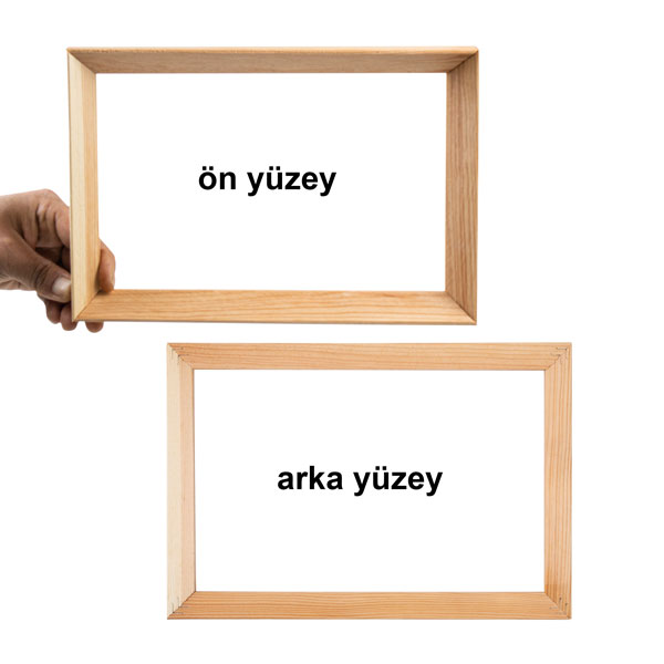 Kanvası çerçeveye uygularken çerçevenin bir yüzeyinde çerçevenin iç kısmına doğru eğim bulunmaktadır. Çerçevenin iç kısmına doğru hafif eğimli olan bu yüzü kanvasa gelecek şekilde ayarlayıp daha sonra kanvası gerdirerek zımba yardımı ile çerçeveye zımbalamanız gerekmektedir.