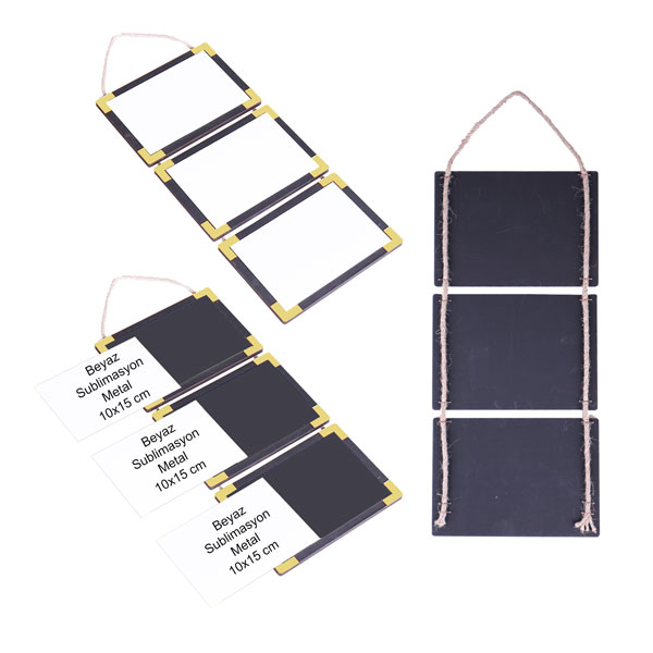Ürün içeriği: 1 adet 3 lü ahşap çerçeve + 3 adet beyaz renk 10x15 cm sublimasyon baskı metali