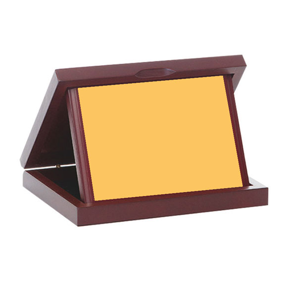 Ürün içeriği: 1 adet ahşap kutulu plaket + 1 adet altın renkli sublimasyon baskı metali
