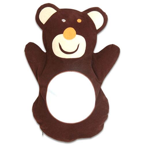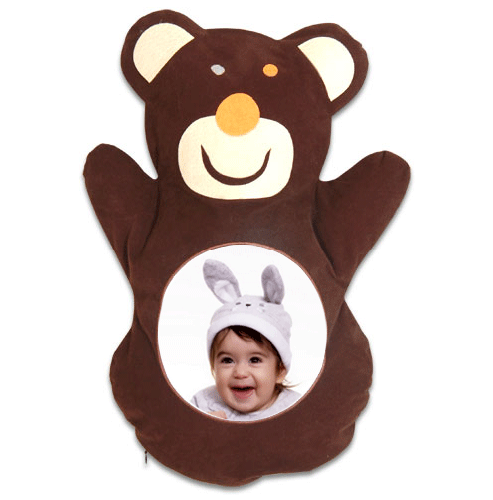 Sublimasyon baskıya uygun, özel süet kumaştan üretilmiştir. Kesim ve dikimi ayıcık şeklinde yapılmıştır. Çocuklar için özel tasarlanmıştır. Kahverengi renkte bir yastık kılıfıdır.