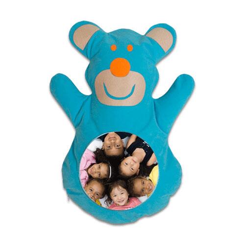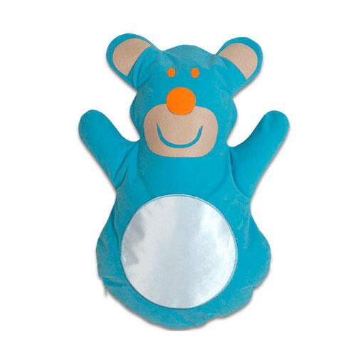Sublimasyon baskıya uygun, özel süet kumaştan üretilmiştir. Kesim ve dikimi ayıcık şeklinde yapılmıştır. Çocuklar için özel tasarlanmıştır. Mavi renkte bir yastık kılıfıdır.