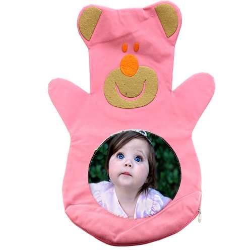 Sublimasyon baskıya uygun, özel süet kumaştan üretilmiştir. Kesim ve dikimi ayıcık şeklinde yapılmıştır. Çocuklar için özel tasarlanmıştır. Pembe renkte bir yastık kılıfıdır.