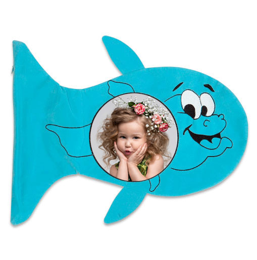 Sublimasyon baskıya uygun, özel süet kumaştan üretilmiştir. Kesim ve dikimi balık şeklinde yapılmıştır. Çocuklar için özel tasarlanmıştır. Mavi renkte bir yastık kılıfıdır.