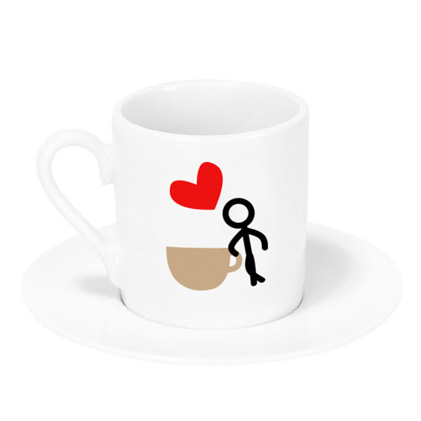 Sublimasyon baskıya uygun, üzeri özel kaplamalı porselen türk kahve fincanıdır.