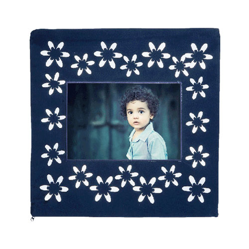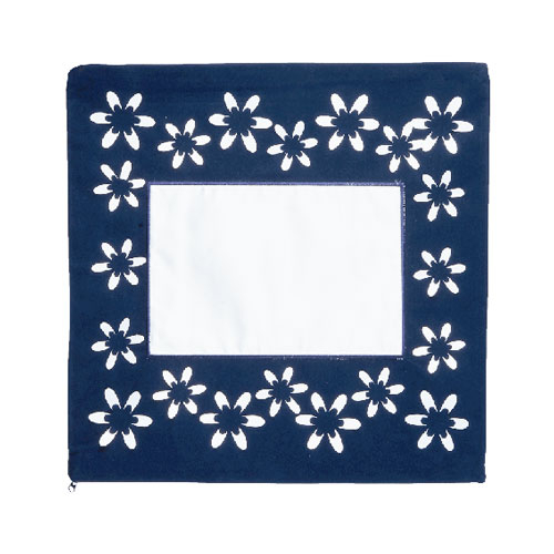 Sublimasyon baskıya uygun, lacivert renkte bir çiçek desenli yastıktır.