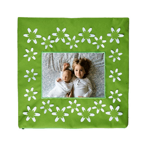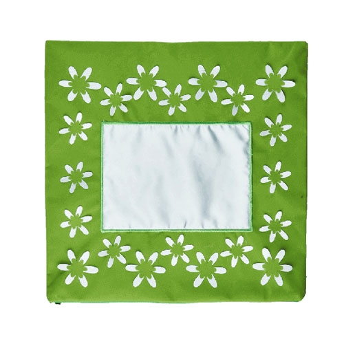 Sublimasyon baskıya uygun, yeşil renkte çiçek desenli bir yastıktır.