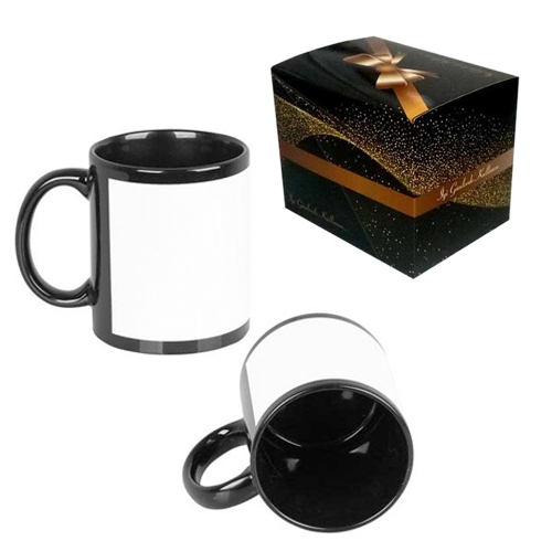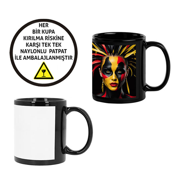 Sublimasyon Porselen Siyah Kupa (Beyaz Baskı Alanlı)