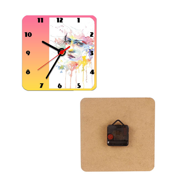 Sublimasyon Ekonomik MDF Kare Saat 19 x 19 cm Ebat: 19 x19 cm Kalınlık :5 mm Ürün içeriği: 1 adet kare 19 x19 cm MDF + 1 adet saat mekanizması Ürün 1 adet kalem pil ile çalışır.Ürün ile kalem pil gönderilmez. Sublimasyon yazıcı ve sublimasyon transfer kağıdı kullanarak MDF ÜRÜNLERE baskı yapmak için şu adımları izleyebilirsiniz: Gerekli Malzemeler: Sublimasyon Yazıcı (sublimasyon mürekkebi ile uyumlu) Sublimasyon Transfer Kağıdı MDF Baskı Ürünleri ( bardak altlığı , magnet , saat , anahtarlık vesaire) Isı Pres Makinesi Baskı Tasarımı (dijital ortamda hazırlanmış) Isıya Dayanıklı Bant Koruyucu Kağıt veya Yanmaz Teflon Kumaş Tasarımı Hazırlayın Baskı yapmak istediğiniz tasarımı bir grafik tasarım programında (Photoshop, CorelDRAW vb.) hazırlayın. Tasarımı yazdırmadan önce ters çevirin (ayna görüntüsü alın), özellikle yazı varsa bu adım önemlidir. Tasarım boyutunu hdf ürün ölçülerine göre ayarlayın. Sublimasyon Yazıcı Ayarları: Yazdırma türünü "yüksek kalite" ve kağıt türünü ‘’matte’’olarak seçin. Hazırlanan tasarımı sublimasyon transfer kağıdına yazdırın. Transfer kağıdını baskı yüzeyi ile temas edecek şekilde MDF ürünün üzerine yerleştirin. Kağıdı hareket etmesini önlemek için ısıya dayanıklı bantla sabitleyin. Isıya dayanıklı bandın iz yapmaması için, mdf nin baskı yapılan yüzeyine değil arka tarafa yapıştırın. MDF ürün altta transfer kağıdı üstte olacak şekilde düz transfer presinize yerleştirin. Isı ve Süre Ayarları: Isı: 170-180 °C , Süre: 60 - 90 saniye , Baskı: Orta düzey basınç Bu süre kullandığınız prese , kağıda ve mürekkebe göre farklılıklar gösterebilir. Farklı ekipman ve malzemelerle yapılacak baskılar için denemeler yapmanızı tavsiye ederiz. Transfer kağıdının üstüne koruyucu kağıt (varsa yanmaz teflon kumaş ) koyarak ısı presin zarar vermesini engelleyin. Isı Presini Kullanın: Ayarladığınız sürede ve sıcaklıkta baskıyı gerçekleştirin. Isı presi açtıktan sonra mdf ’yi dikkatlice çıkarın ve kağıdı yüzeyden hemen soyarak kontrol edin. Baskının yüzeyde tam oturduğundan ve renklerin canlı olduğundan emin olun. İpuçları: Test Baskısı: İlk kez yapıyorsanız, önce bir test baskısı yaparak ayarların doğru olduğundan emin olun.
